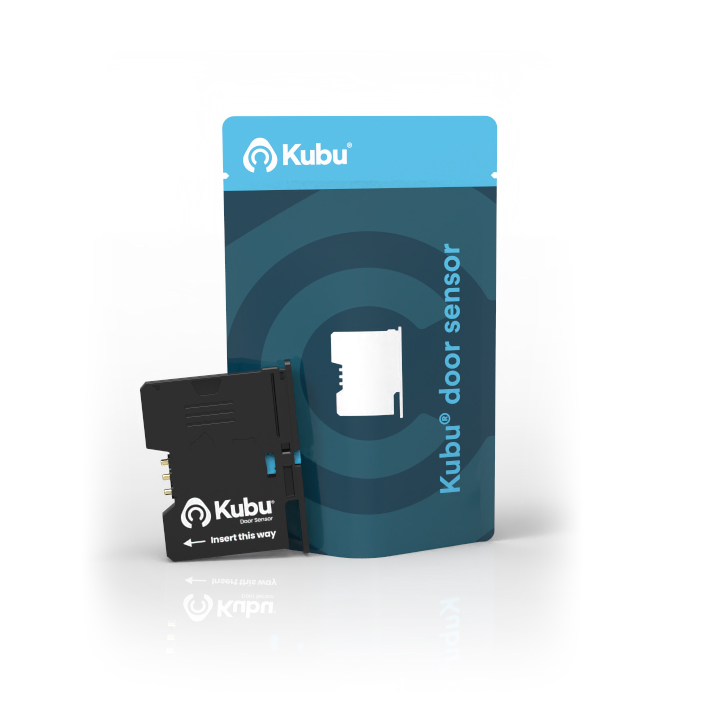 The Kubu Door Sensor slots effortlessly into your door lock that ‘Works with Kubu’, then simply pair with a Kubu Hub to activate your Smart Security.